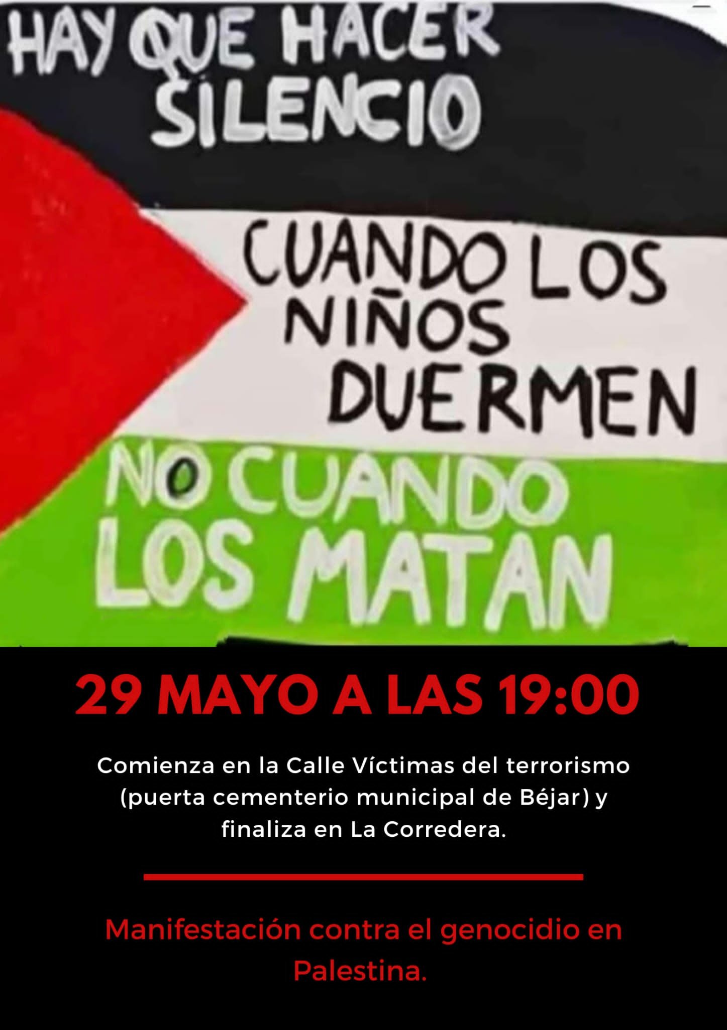 Una convocatoria anónima recorre Béjar esta semana para denunciar el genocidio en Palestina.