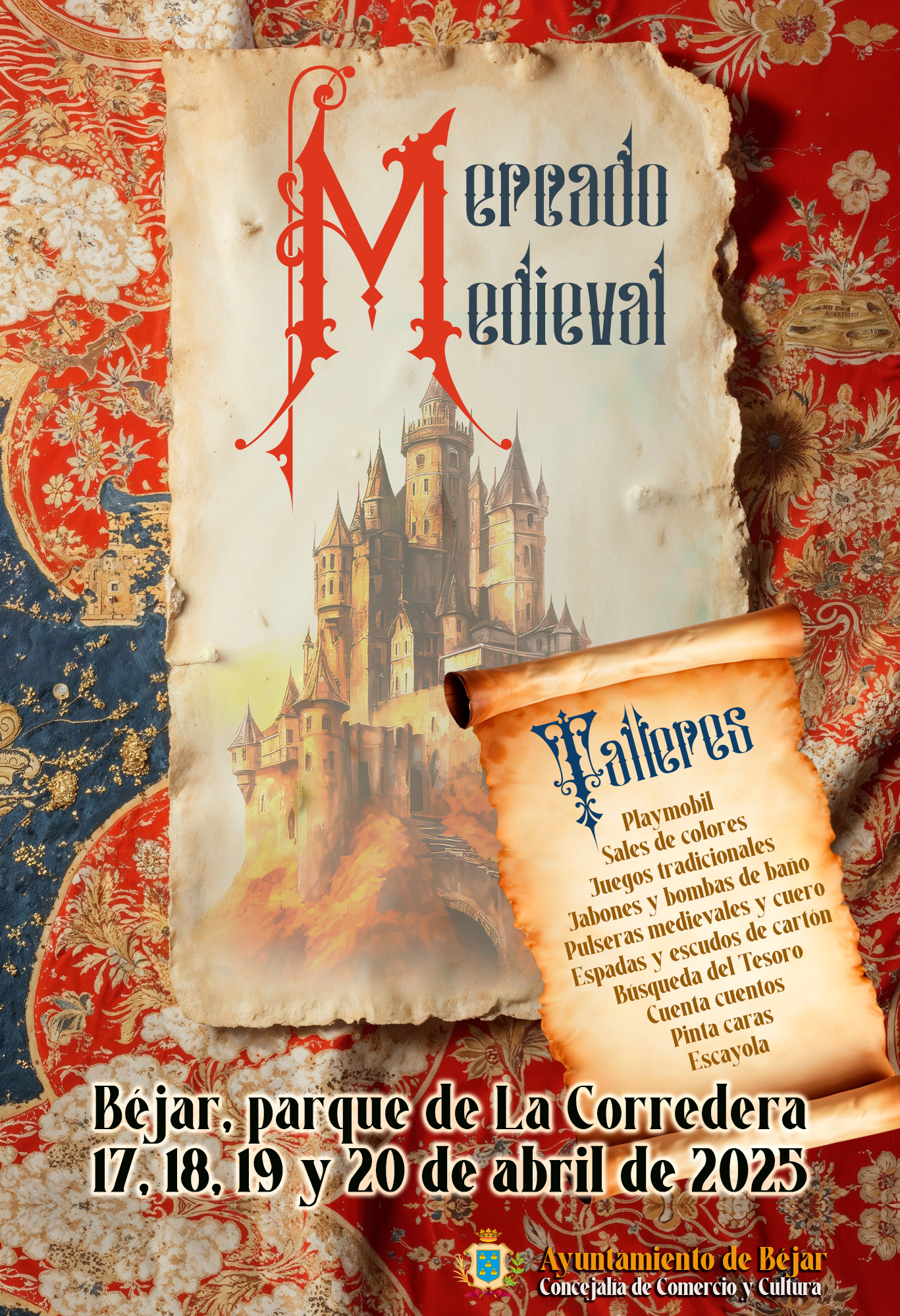 Del 17 al 20 de abril, el parque de La Corredera acogerá un animado Mercado Medieval, con talleres de jabones artesanales, figuras de Playmobil, sales de colores, cuentacuentos, pintacaras y muchas sorpresas para toda la familia.