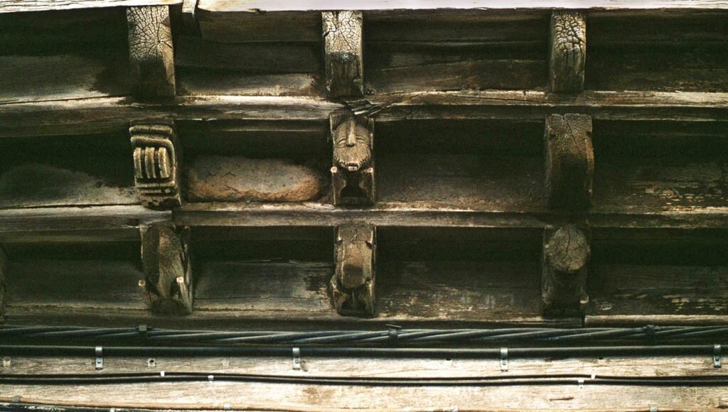 Es precisamente en esa etapa tardía, a caballo entre los siglos XIII y XIV, donde se sitúan los ejemplos de Béjar recogidos en el libro. Se trata de las casas con voladizos de madera del barrio de la Antigua, una muestra excepcional de carpintería medieval que el autor define como “una maravillosa pervivencia, extremadamente valiosa, de la manera de construir y decorar las viviendas en la Baja Edad Media”. Originalmente fueron tres parcelas urbanas contiguas, con salientes de estructura similar, compuestos por tres hileras de vuelo sucesivo sustentadas por canes de madera finamente tallados, auténticos modillones en proa de nave, inspirados en modelos románicos de piedra y madera.