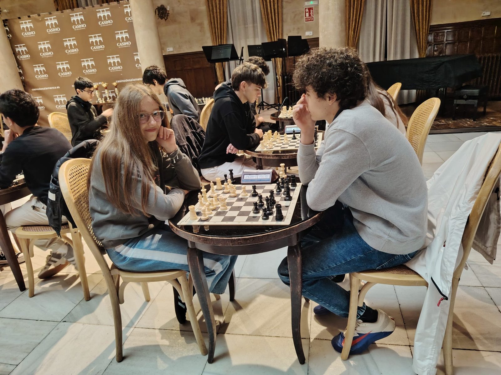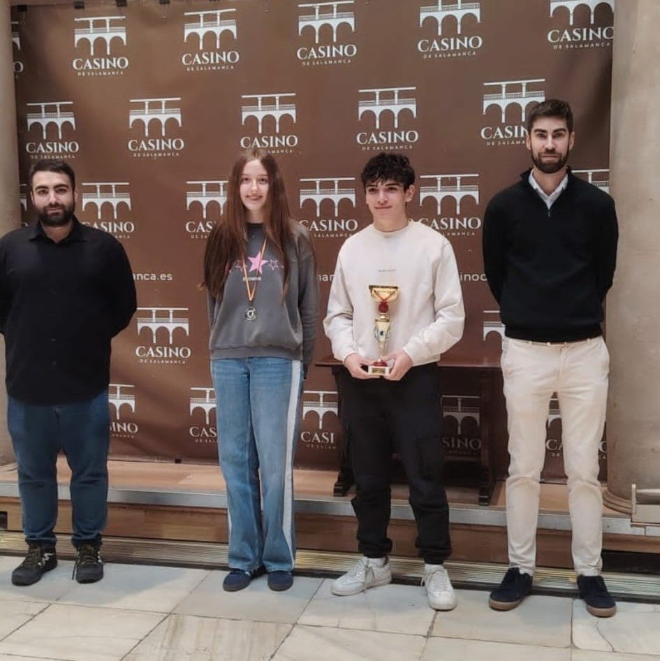 El torneo, disputado bajo un sistema de cinco rondas a ritmo rápido, puso de manifiesto la solidez técnica de la cantera bejarana. En la categoría juvenil, Natalia Esteban se alzó con el título de campeona provincial, consolidándose como una de las figuras emergentes del tablero regional. La actuación en esta categoría se completó con la medalla de bronce obtenida por Conrado Borrego, asegurando así una doble presencia en el podio para el club.