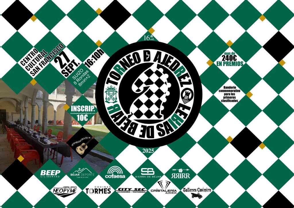 El próximo 27 de septiembre de 2025, el emblemático Centro Municipal de Cultura San Francisco volverá a ser el escenario de uno de los eventos más esperados por los aficionados al ajedrez: El XVI Torneo de Ajedrez Ferias de Béjar. Este certamen, ya consolidado en el calendario deportivo de la ciudad, promete una tarde cargada de estrategia, concentración y espíritu competitivo.