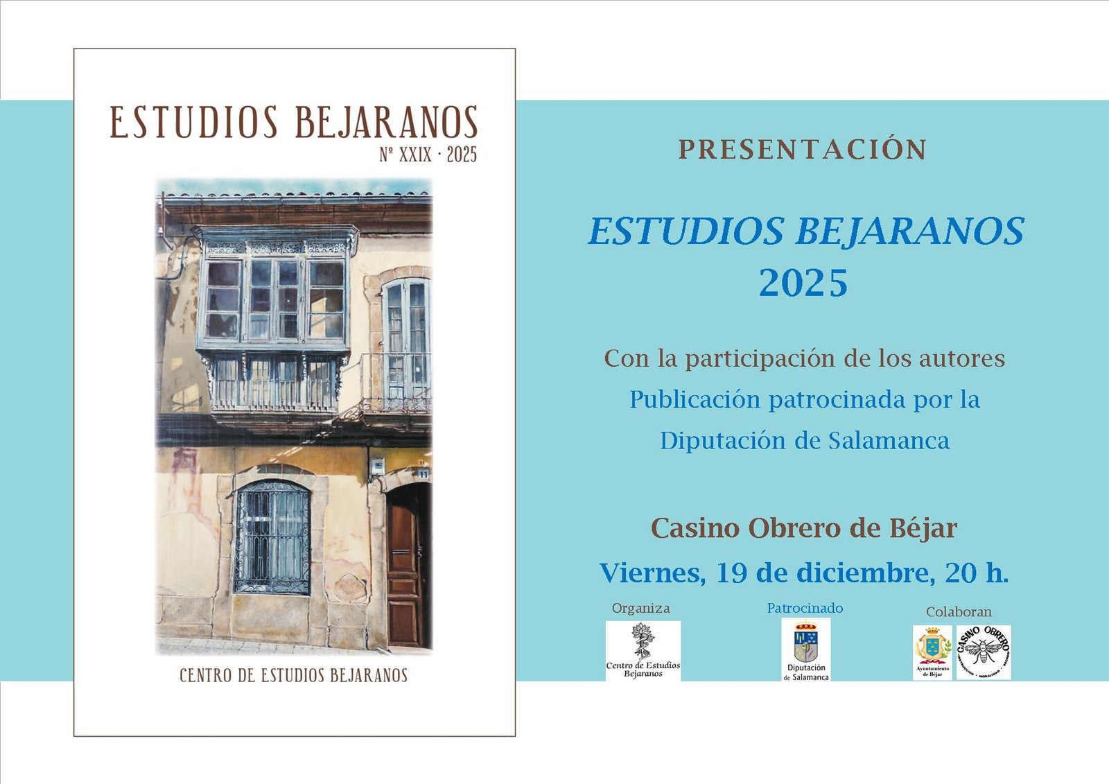 El Centro de Estudios Bejaranos se prepara para celebrar uno de los hitos culturales más esperados del año: la presentación de la revista Estudios Bejaranos, una publicación que, edición tras edición, reafirma su papel como referente cultural e histórico de la ciudad. Con el respaldo de la Diputación de Salamanca, la revista alcanza su edición número veintinueve, ejemplo de una trayectoria iniciada en 1994 y mantenida de forma ininterrumpida desde el año 2000.