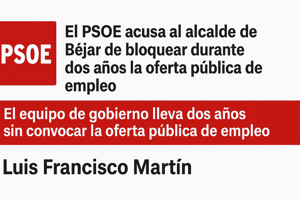 El PSOE de Béjar ha vuelto a denunciar la falta de gestión del alcalde Luis Francisco Martín, quien, según indican, mantiene bloqueada desde hace dos años la convocatoria de la oferta pública de empleo en Béjar.