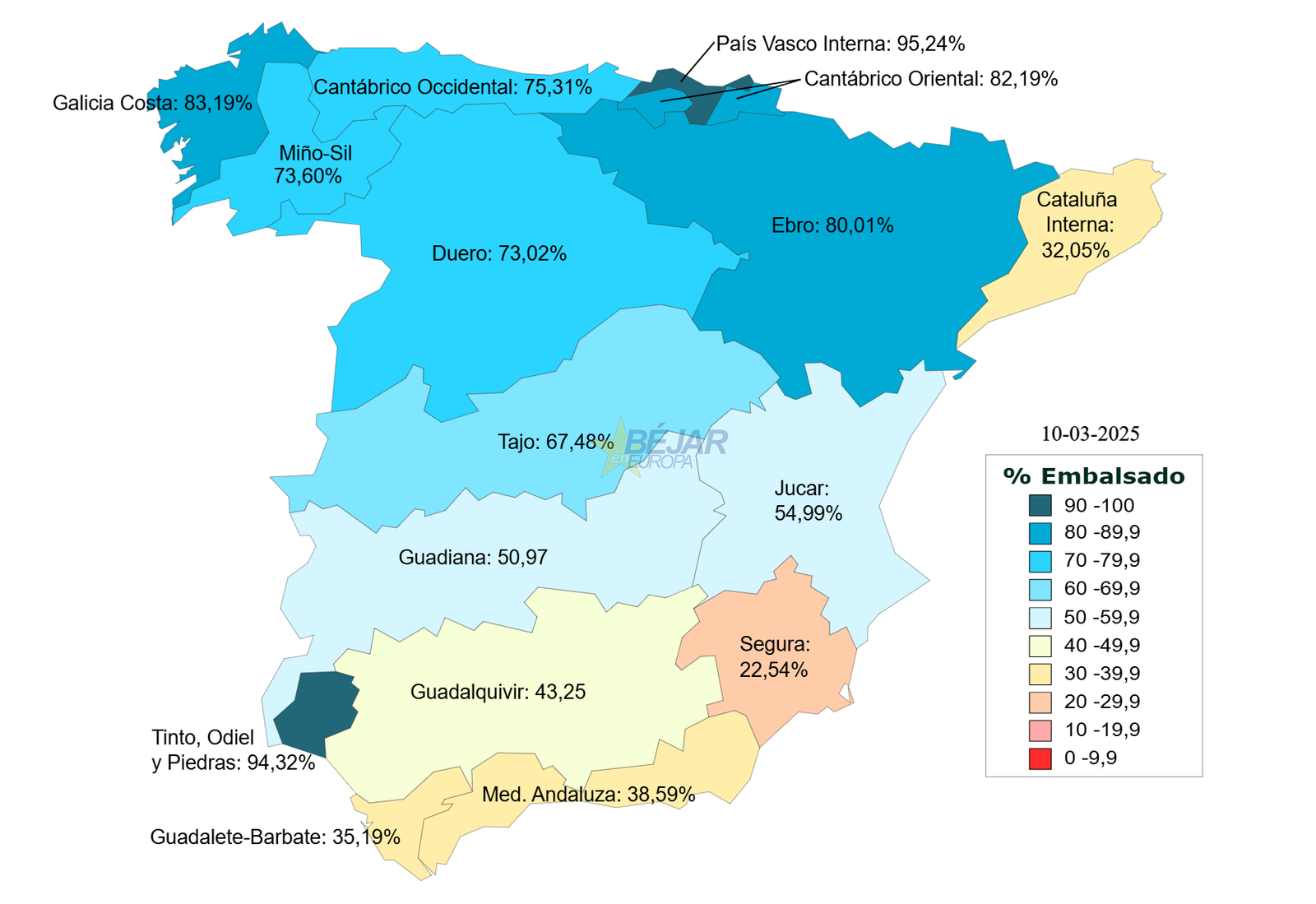- Un 11,49% superior a la media en la Cuenca del Tajo