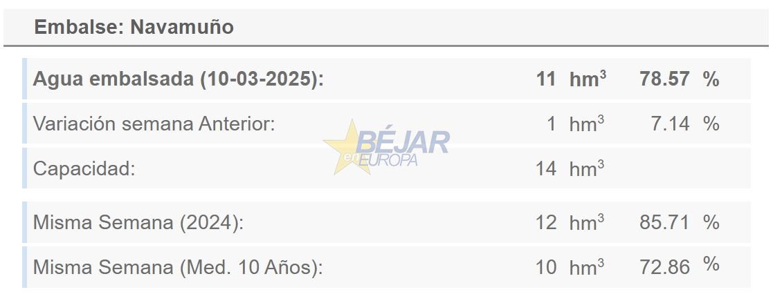 GRÁFICOS | Navamuño alcanza una reserva hídrica de casi el 80%