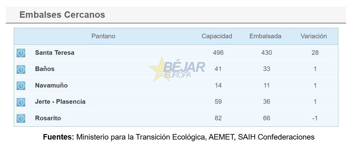 Por otra parte, también se refleja una subida considerable de la reserva hídrica en Navamuño en relación a la media en la Cuenca del Tajo (+11,49%).