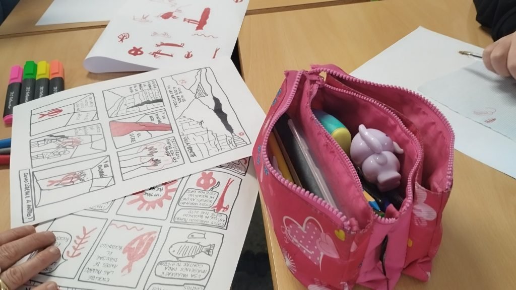 Como parte del enfoque pedagógico, los alumnos se organizaron por grupos para narrar en formato cómic la historia de Antro, una figura antropomorfa encerrada tras ser vandalizada, con el objetivo de fomentar la sensibilización sobre los riesgos humanos que amenazan este patrimonio.