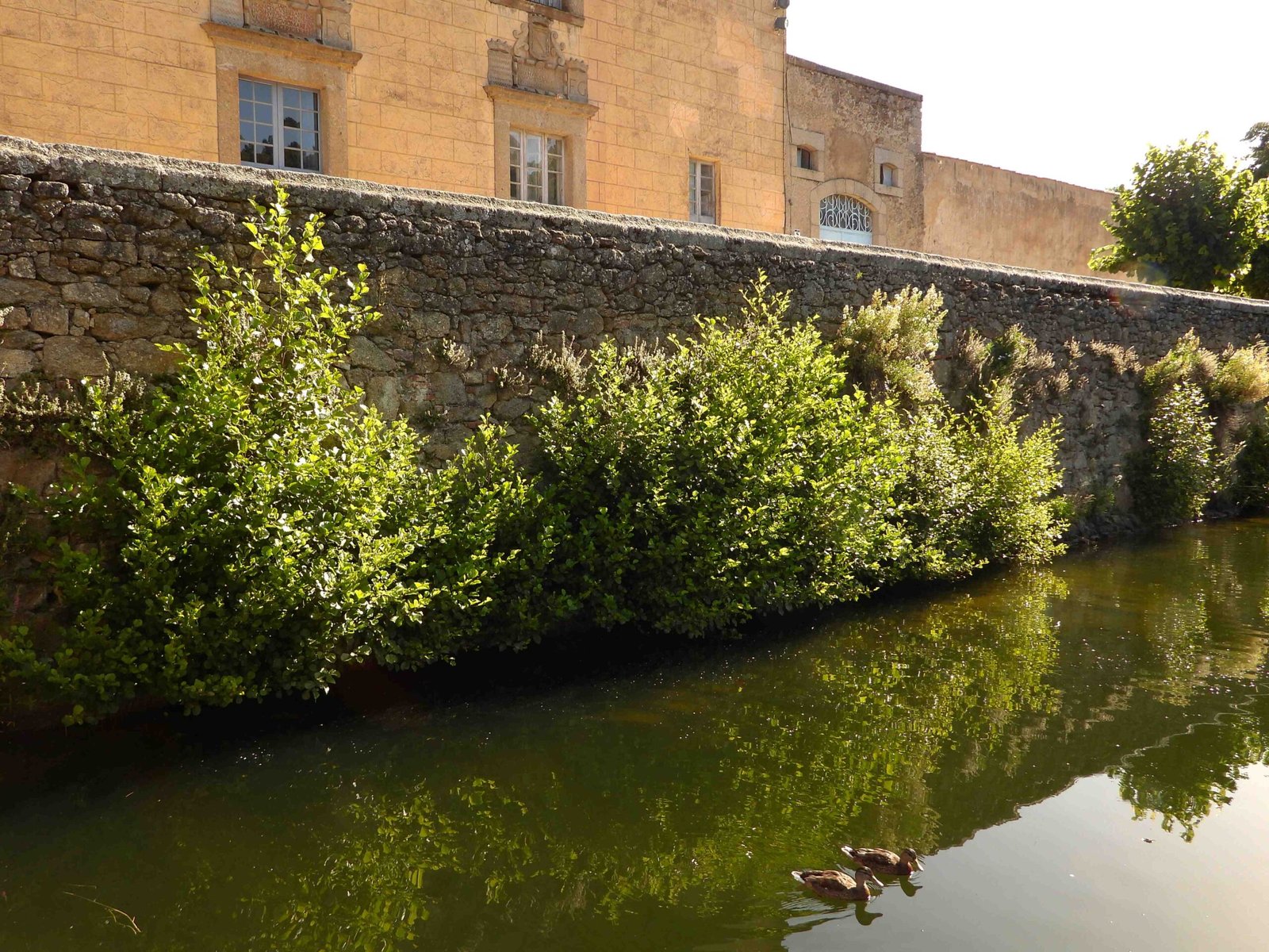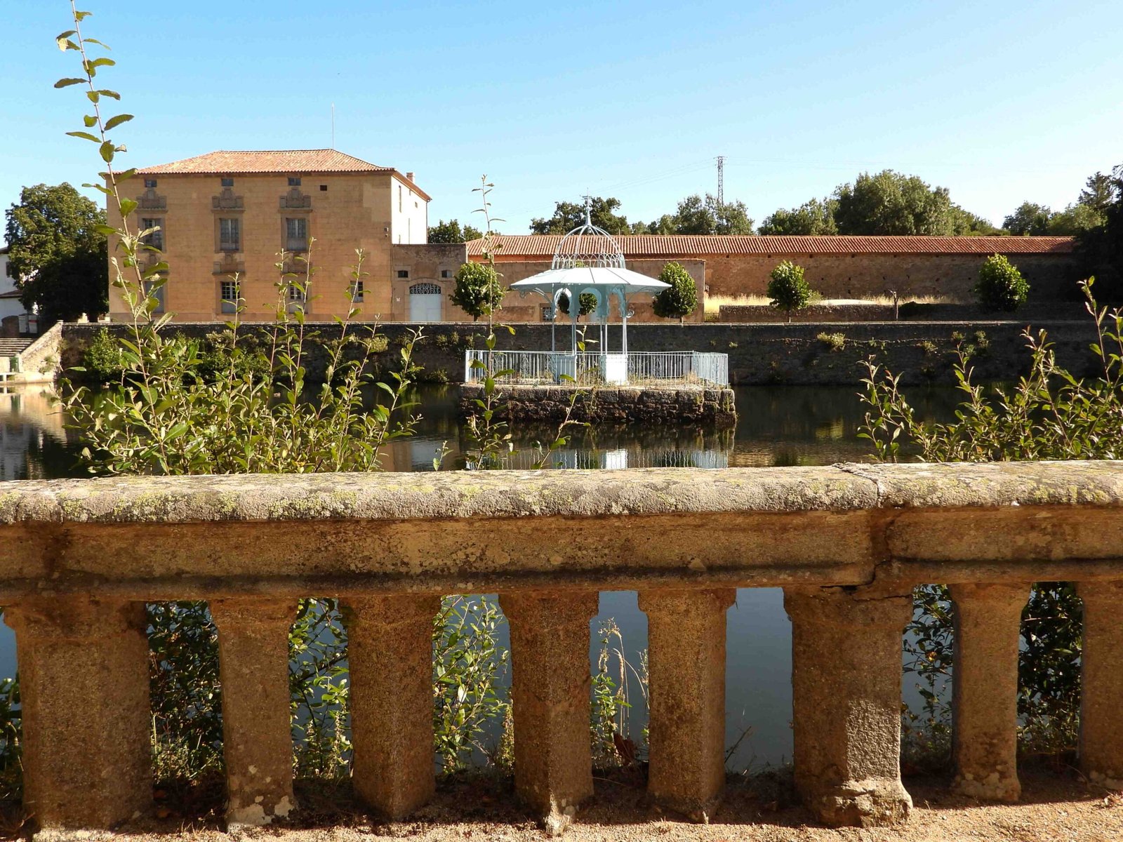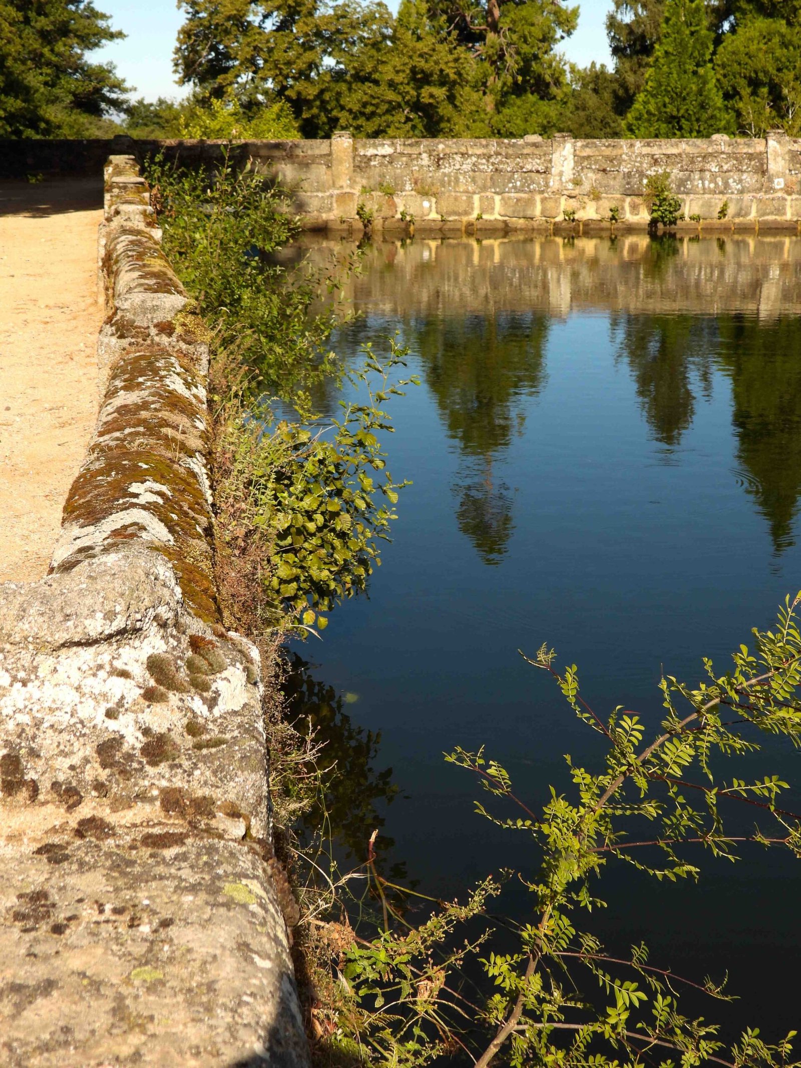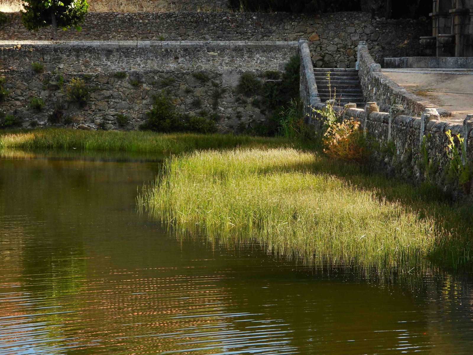 FOTOS 1 y 2. Brotes de alisos y sauces bien desarrollados reventando las juntas del cerramiento de mampostería del estanque y ocultando las vistas hacia el palacete (y el dineral que costó su restauraciónmuraria, a la basura).