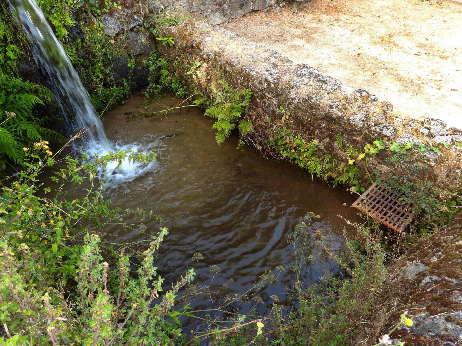 FOTOS 4 y 5. Hierba y juncos sobre los montículos de arena que ya emergen sobre las aguas del estanque en los ángulos sureste y, sobre todo, noreste (¿nadie hace uso del desarenador?, ¿nadie lo vacía? FOTO 6).
