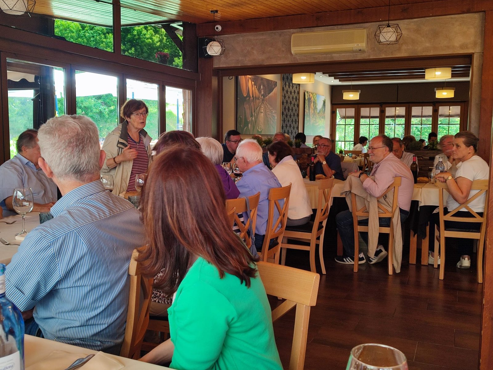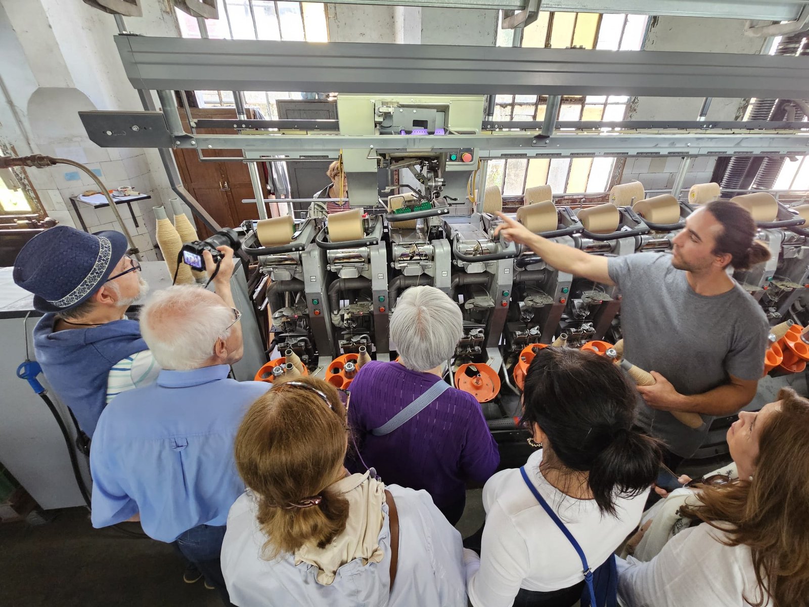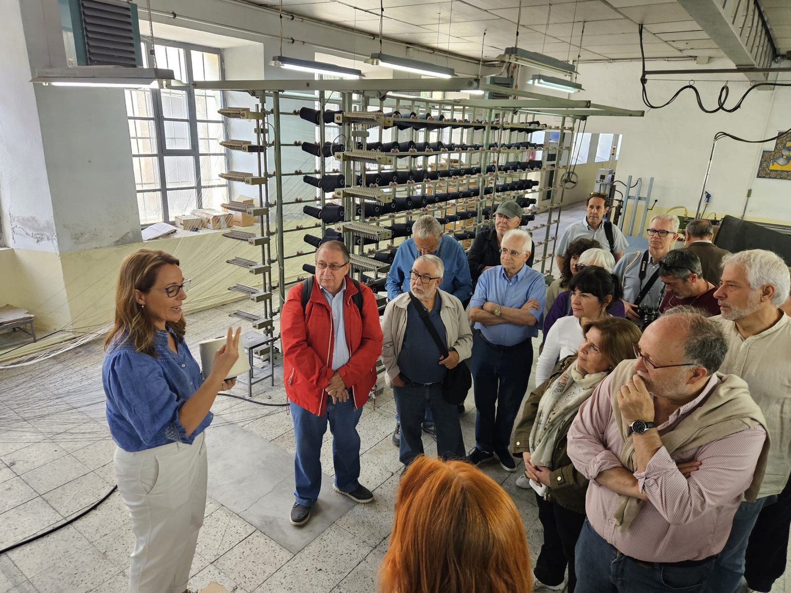 La siguiente parada fue en Cipriano Rodríguez Arias S.A., una fábrica con más de 180 años de funcionamiento ininterrumpido, especializada en hilatura de carda, tintes y acabados textiles. Jerónimo Rodríguez-Arias Delgado, representante de la empresa, acompañó al grupo en un recorrido técnico por las instalaciones, completado por las explicaciones del historiador Javier Ramón Sánchez Martín, miembro del CEB.