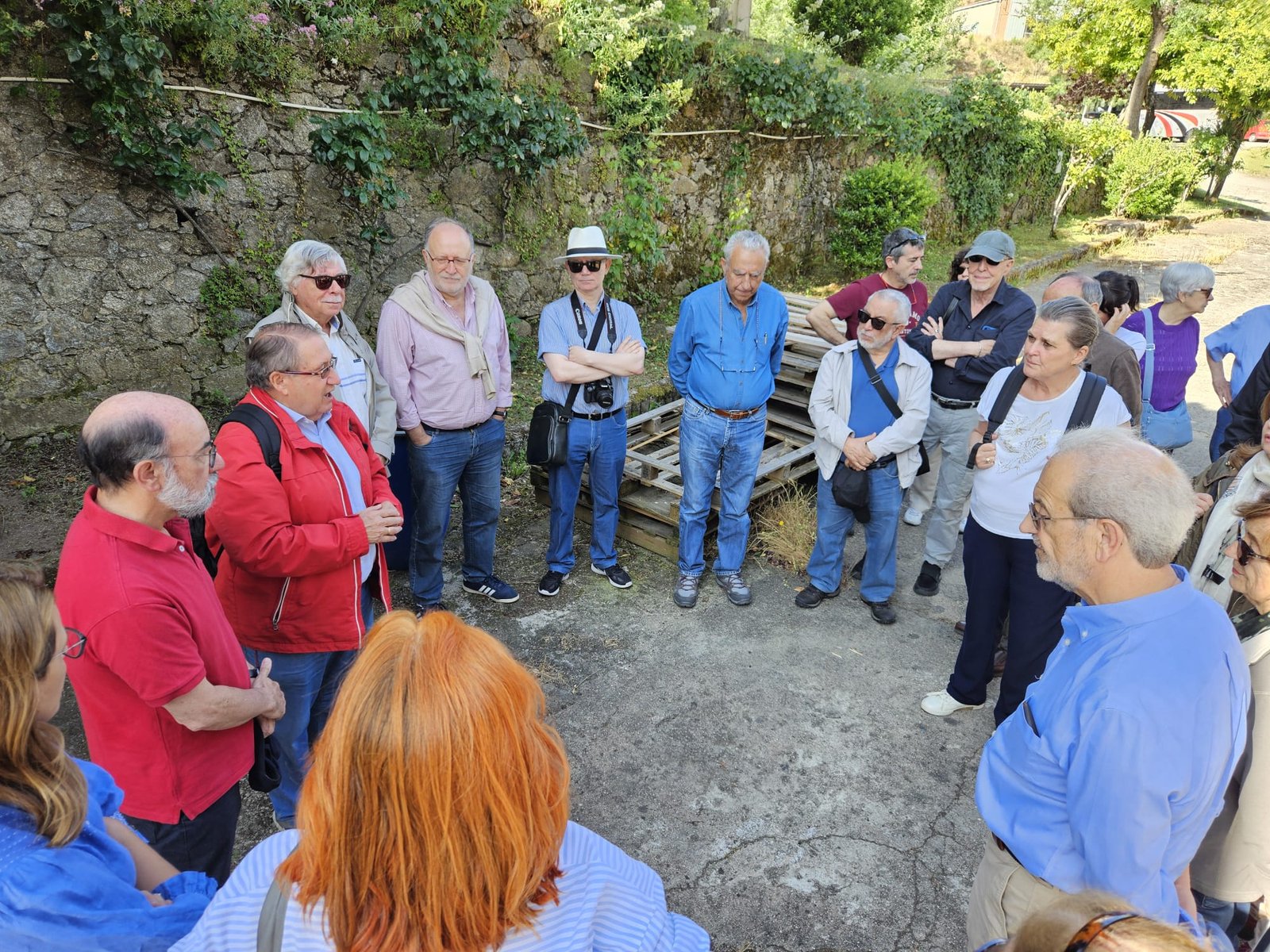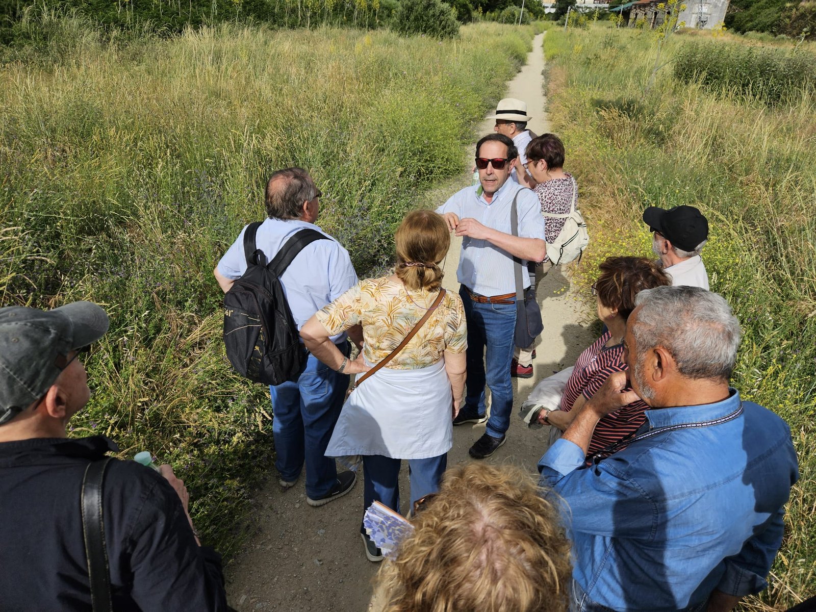 Tras el almuerzo, el grupo realizó un recorrido patrimonial que incluyó la Plaza de Toros, el Santuario de Nuestra Señora del Castañar y un tramo de la Vía Verde, desde donde se pudo observar el puente de San Albín y el corredor industrial del río Cuerpo de Hombre. En esta fase, las explicaciones corrieron a cargo de Carmen Cascón Matas, José Ignacio Díez Elcuaz y Juan Antonio Frías Corsino, miembros del Centro de Estudios Bejaranos.