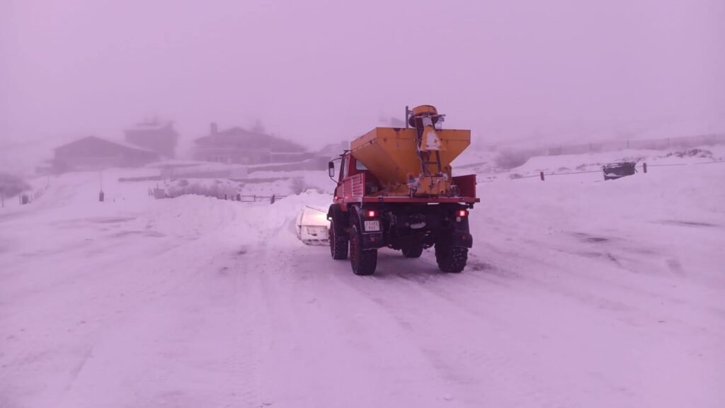 La jornada de hoy en la Sierra de Béjar – La Covatilla ha sido un ejemplo claro de esfuerzo, responsabilidad y transparencia. Desde primeras horas de la mañana, el personal de la estación ha estado trabajando sin descanso, luchando contra un temporal que no ha dado ni diez minutos de tregua. El camión quitanieves ha actuado de manera continua en la carretera SA-180, pero la ventisca, el hielo persistente y la nieve acumulada han hecho imposible mantener el acceso en condiciones seguras.