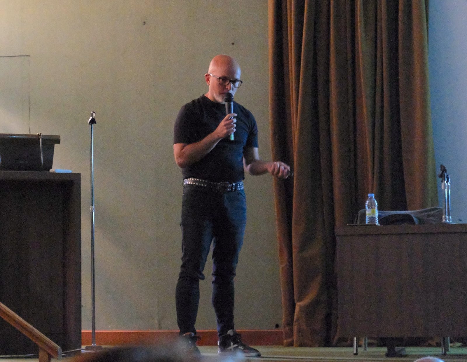 El ponente proyectó imágenes de las obras del artista, centrándose en dos piezas clave: