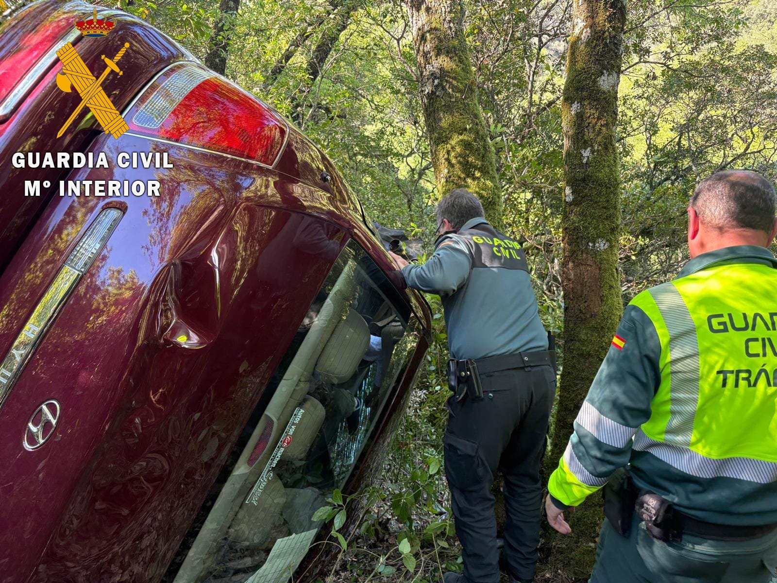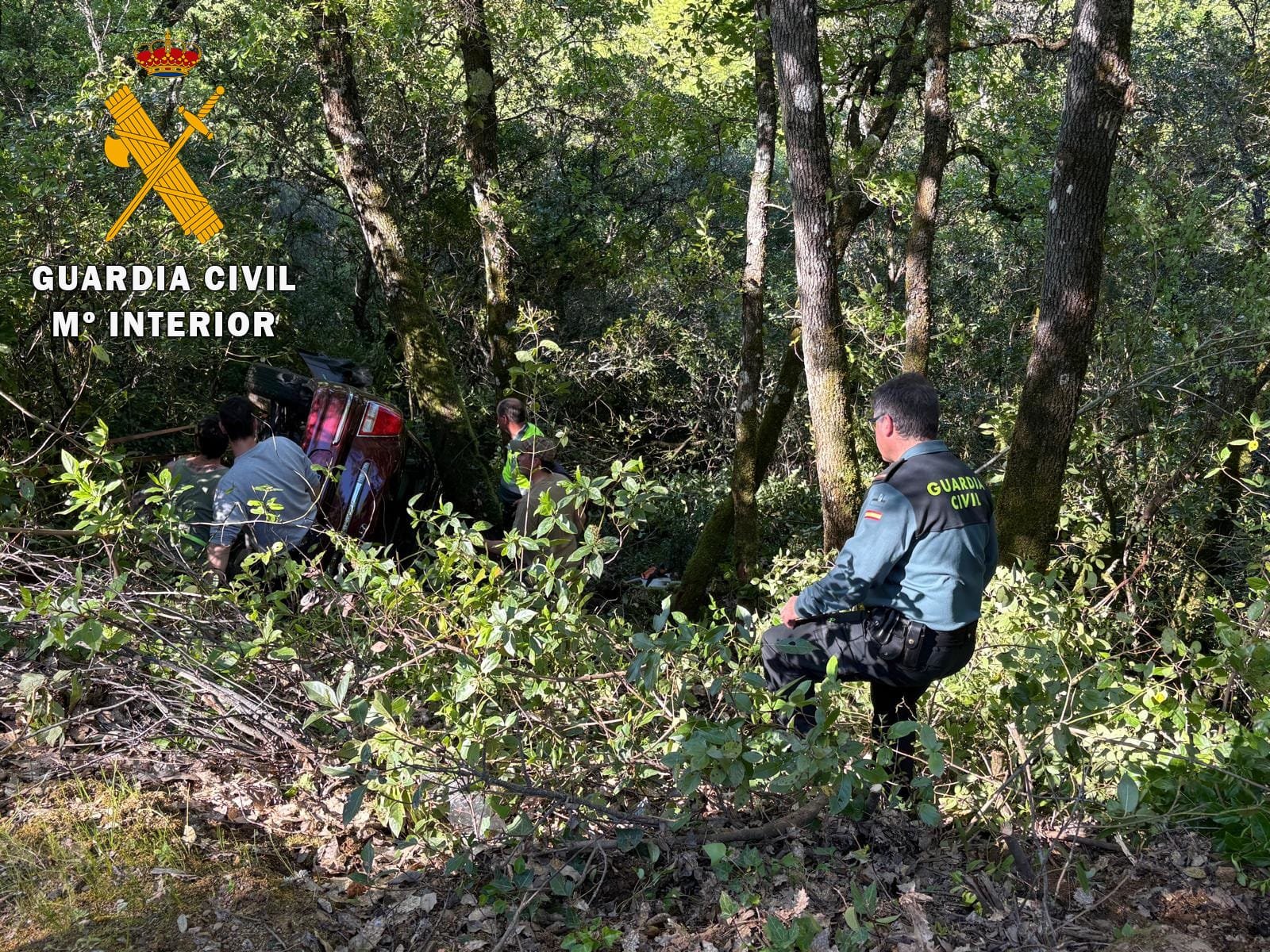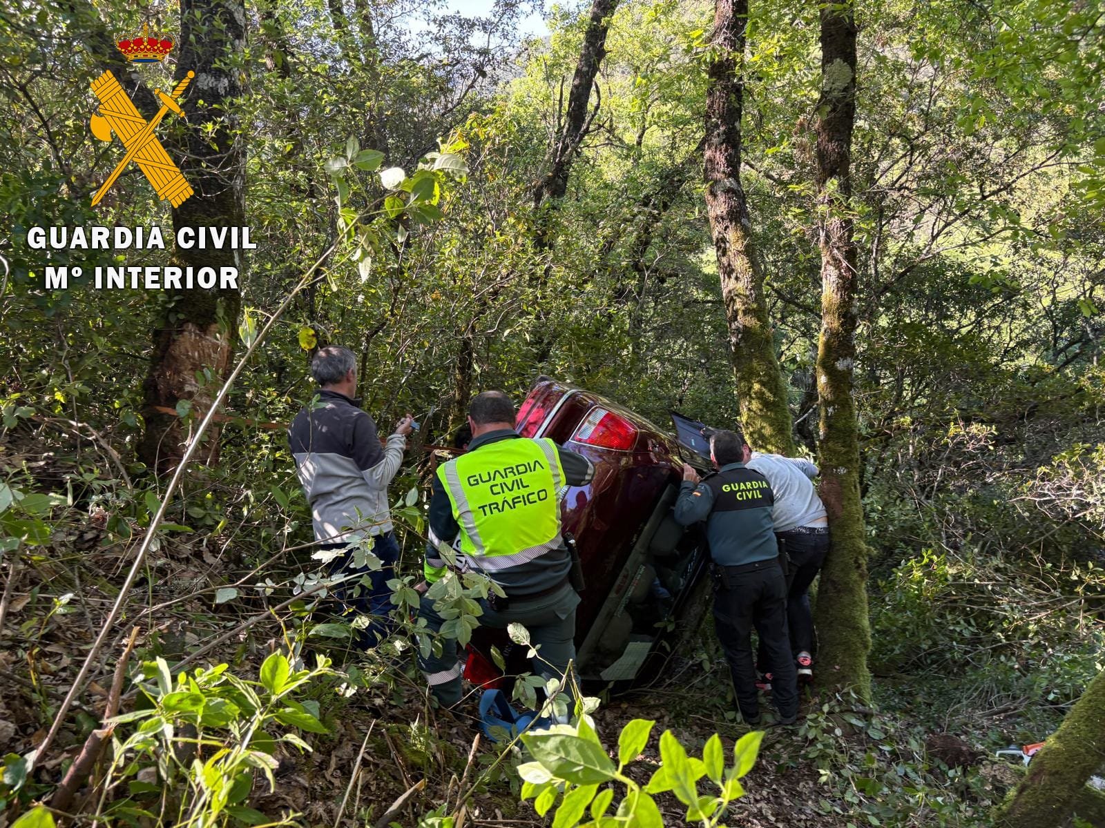 El varón se encontraba atrapado en su vehículo volcado, en una zona de difícil acceso. Los agentes de la Guardia Civil aseguraron el vehículo para evitar deslizamientos y, con la colaboración del Parque de Bomberos de Béjar, procedieron a excarcelar al accidentado.