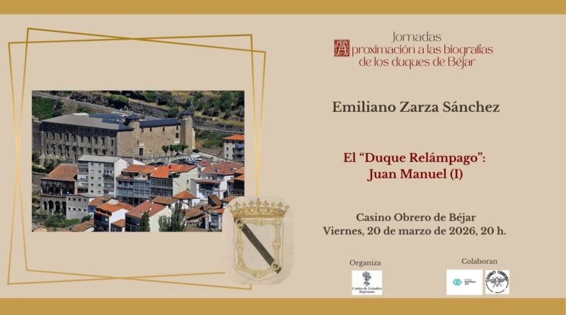 El ponente, Emiliano Zarza Sánchez, aporta una sólida trayectoria académica al evento. Licenciado en Geografía e Historia por la Universidad de Salamanca y Premio Extraordinario de Máster, Zarza ejerce como Catedrático de Geografía e Historia. Su vinculación con la investigación local es profunda: fue el ganador del Premio “Ciudad de Béjar” en 2013 por su monografía sobre el X duque de Béjar y es miembro activo del Centro de Estudios Bejaranos (CEB) desde 2017.