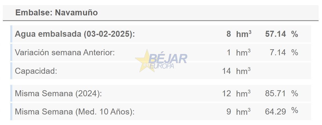 No obstante, y pese a esta ligera subida, Navamuño sigue por debajo de la media en la Cuenca del Tajo (-7,42%).