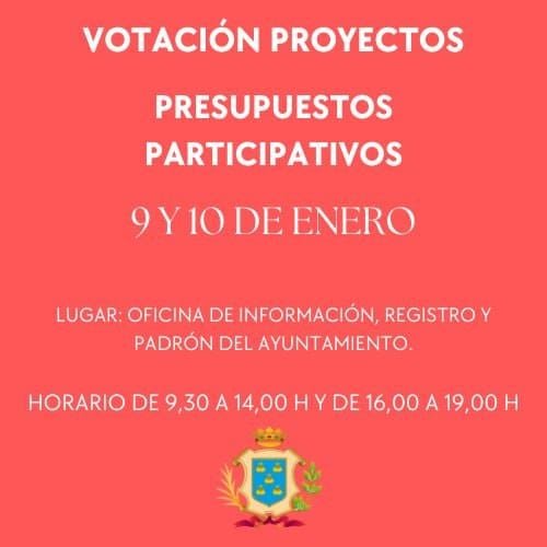 Tal y como viene informando BÉJAR EN EUROPA desde el inicio de esta iniciativa el pasado 6 de julio de 2022 con la consulta pública para la elaboración del reglamento de Presupuestos Participativos 2023, con informaciones posteriores como la apertura de la convocatoria vecinal para presentar los proyectos, así como como las 5 propuestas definitivas para su aprobación; ahora los bejaranos ya pueden votar entre esos proyectos los días 9 y 10 de enero de 2023 de manera presencial en la oficina de Información, Registro y Padrón del Ayuntamiento de Béjar, de 09:30 a 14:00 horas y de 16:00 a 19:00 horas.