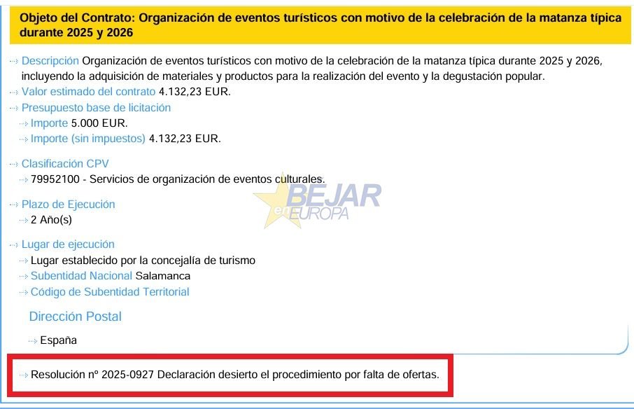 Todo ello después de que, como ya se ha hecho con el Día del Calderillo y de la Fiesta de Interés Turístico Internacional del Corpus Christi, se haya tratado de privatizar este evento con un presupuesto base de 5.000 euros por dos años y teniéndolo que declarar «desierto por falta de ofertas».