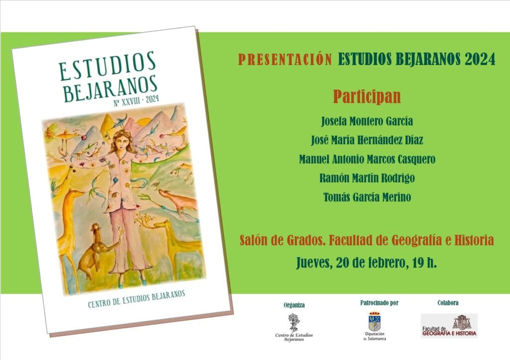 El jueves 20 de febrero de 2025 el Centro de Estudios Bejaranos presentará por vez primera su revista Estudios Bejaranos en Salamanca. Será en el Salón de Grados de la Facultad de Geografía e Historia a las 19 horas.