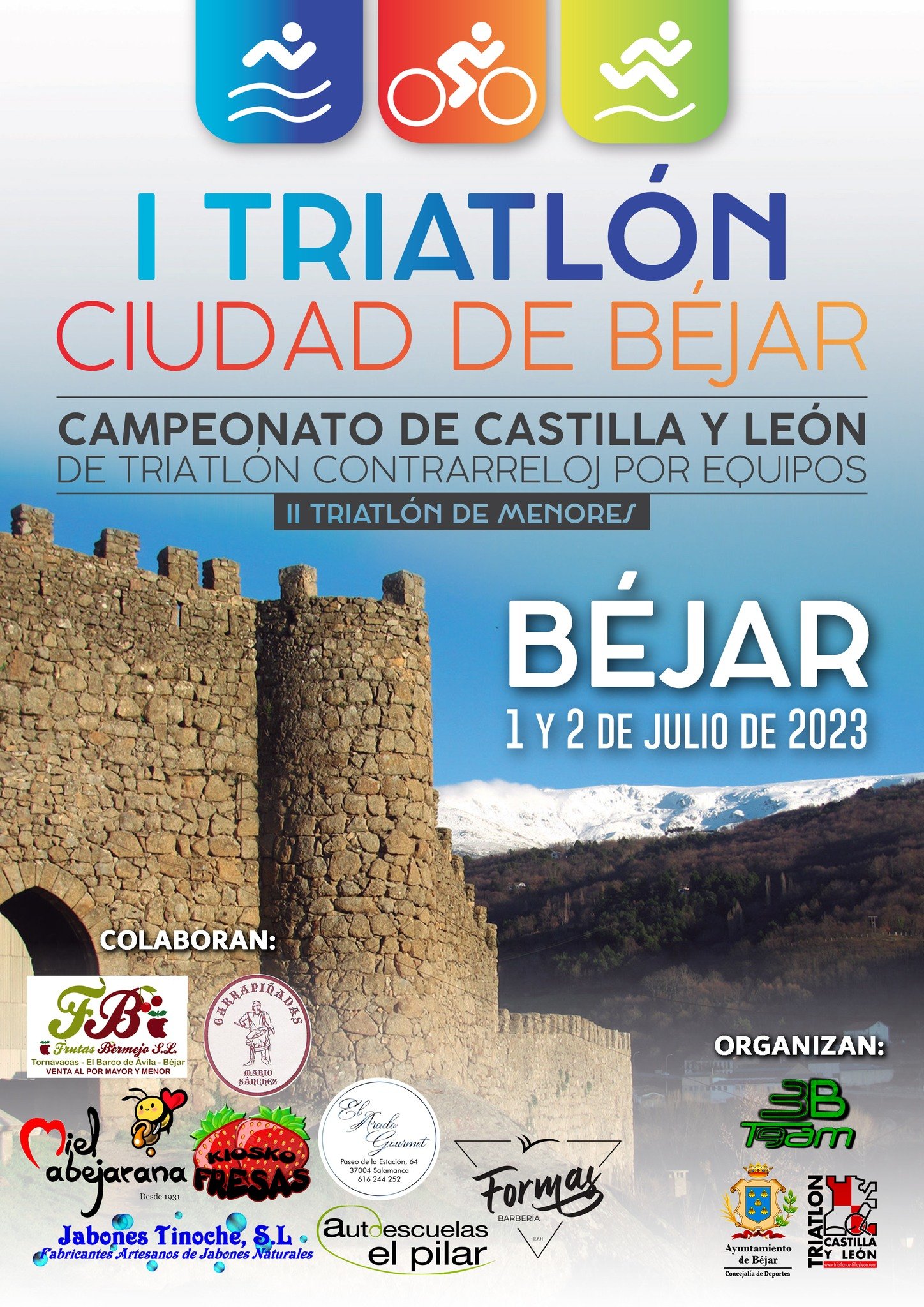 El flamante concejal Rubén Martín (PP), que presumiblemente llevará el área de Deportes en el Ayuntamiento de Béjar, y el presidente del Club Deportivo Tribeteam, Miguel A. Martín, han presentado el I Triatlón Ciudad de Béjar y el II Triatlón de Menores. Ambos se desarrollarán en Béjar los días 1 y 2 de julio. Son pruebas organizadas por el consistorio bejarano, junto con la Federación de Pentatlon Moderno y Triatlón de Castilla y León, así como con el Club Deportivo Tribeteam.