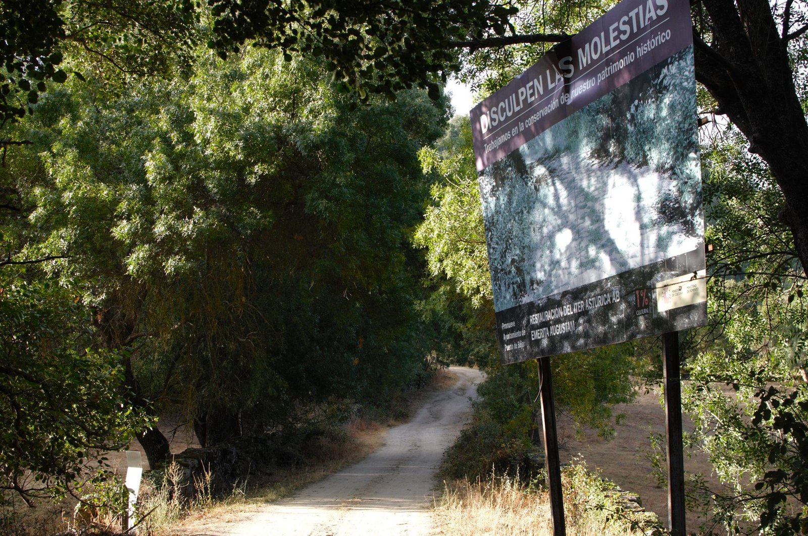 Después de que, pasados más de 15 años, algún espabilado -no lo duden- encargase un cartel de dimensiones colosales para publicitar unas obras “de conservación de nuestro patrimonio histórico”, creando así la grosera paradoja, tan carpetovetónica, de plantar kilos de chatarra junto al Puente de La Malena, en uno de los tramos más impresionantes de la Vía de la Plata, precisamente para anunciar la restauración de la misma. Un tramo gozoso, donde la historia y el paisaje se maridan para provocar una punzada de privilegio en el caminante. Un tramo para el disfrute de cualquiera que no sea un cazurro (y lo digo pese a que, desde el taburete de bar a los escaños parlamentarios, este país parece dividirse morbosamente entre la militancia sanchopancista y el postureo cultureta).