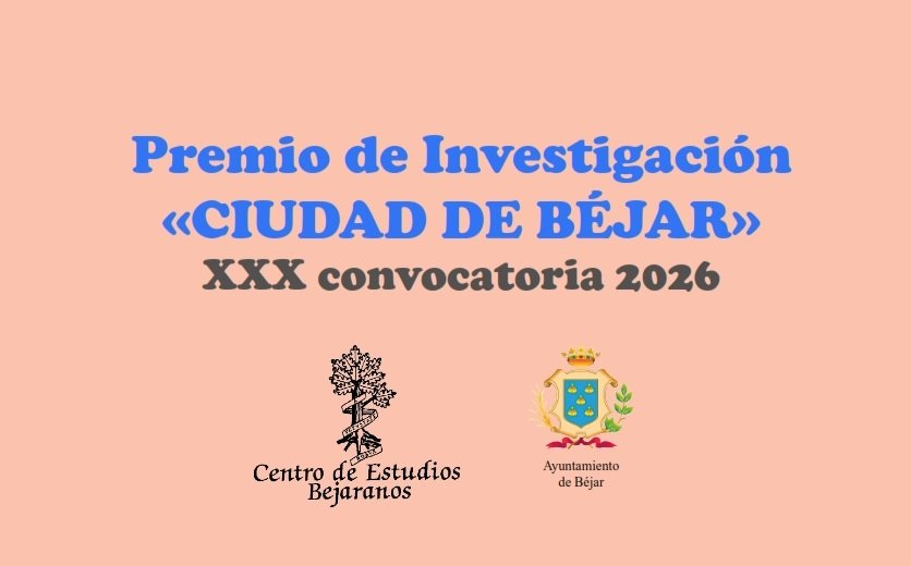 El Centro de Estudios Bejaranos (CEB) ha hecho públicas las bases de la XXX convocatoria del Premio de Investigación “Ciudad de Béjar”, un certamen que llega a su tercera década consolidado como el referente académico primordial para el estudio y la divulgación científica de nuestro territorio.
